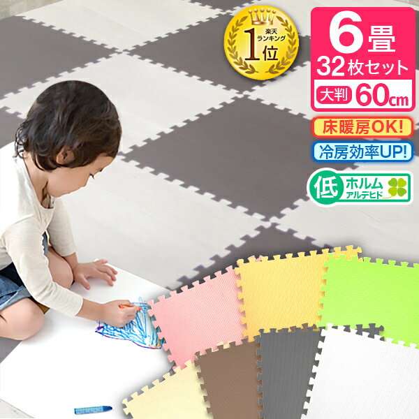 ジョイントマット 大判 59cm 32枚 6畳 防音 騒音 吸収 サイドパーツ付 ベビーマット クッションマット 赤ちゃん 厚み1cm タンスのゲンpaypayモール店 通販 Paypayモール